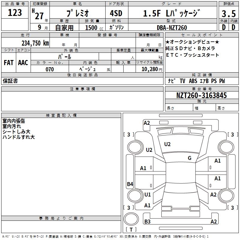 TOYOTA PREMIO - лот 123