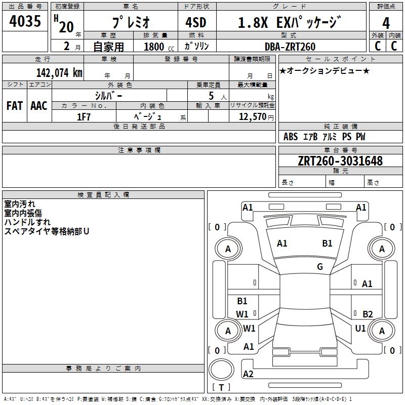 TOYOTA PREMIO - лот 4035