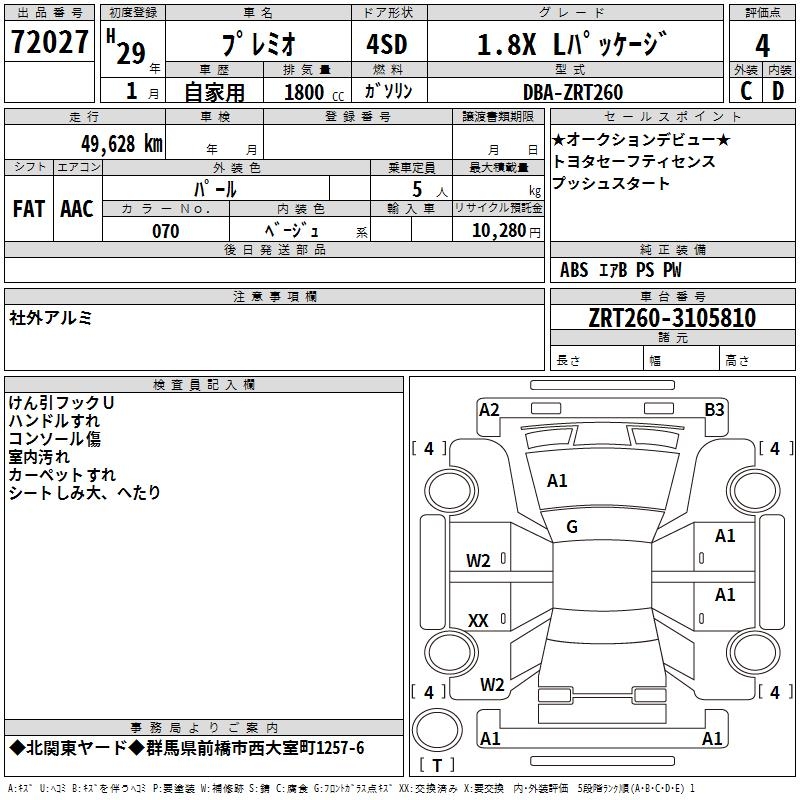 TOYOTA PREMIO - лот 72027
