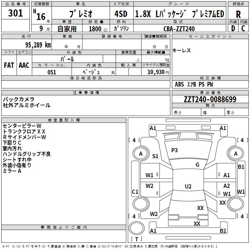 TOYOTA PREMIO - лот 301