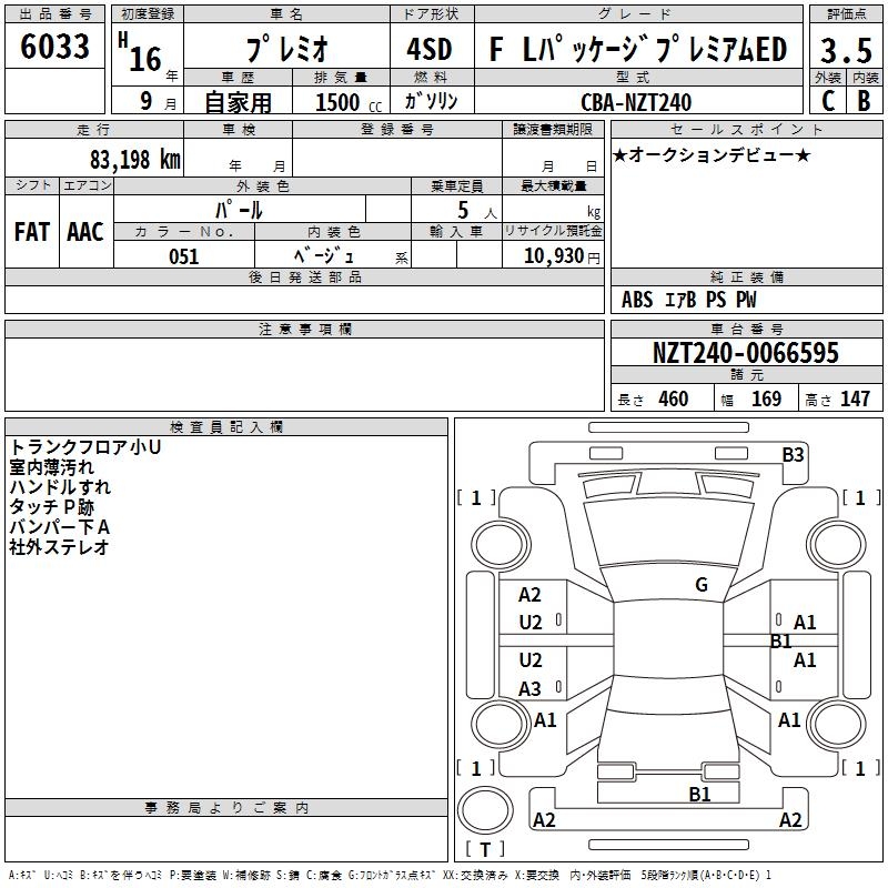 TOYOTA PREMIO - лот 6033