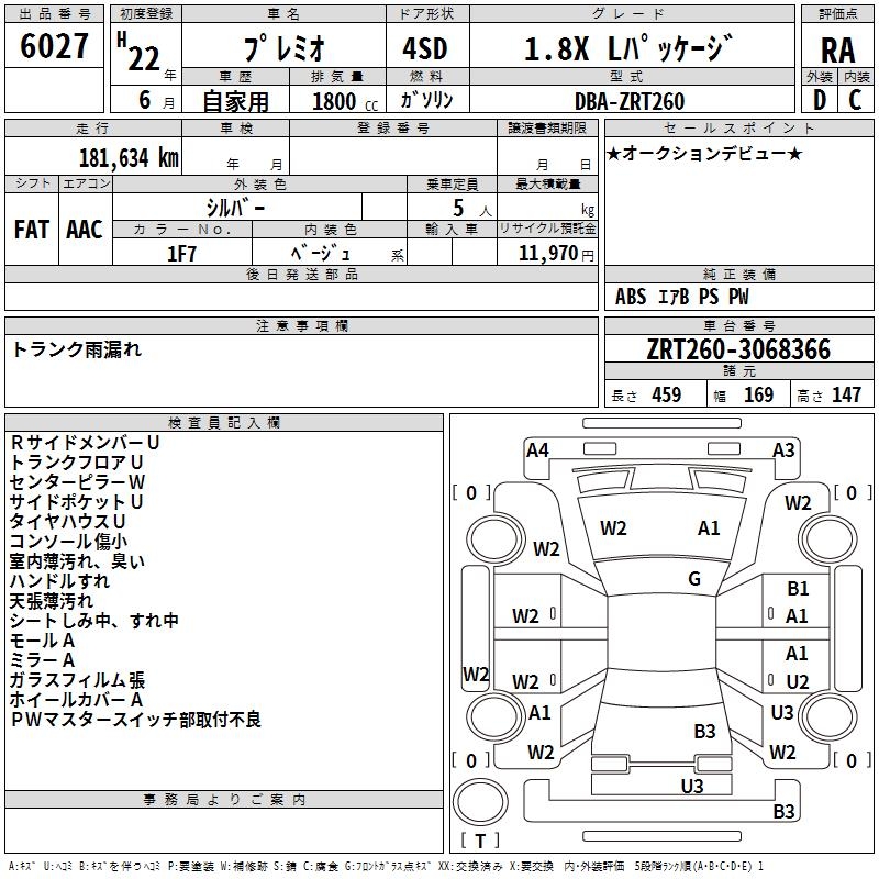 TOYOTA PREMIO - лот 6027