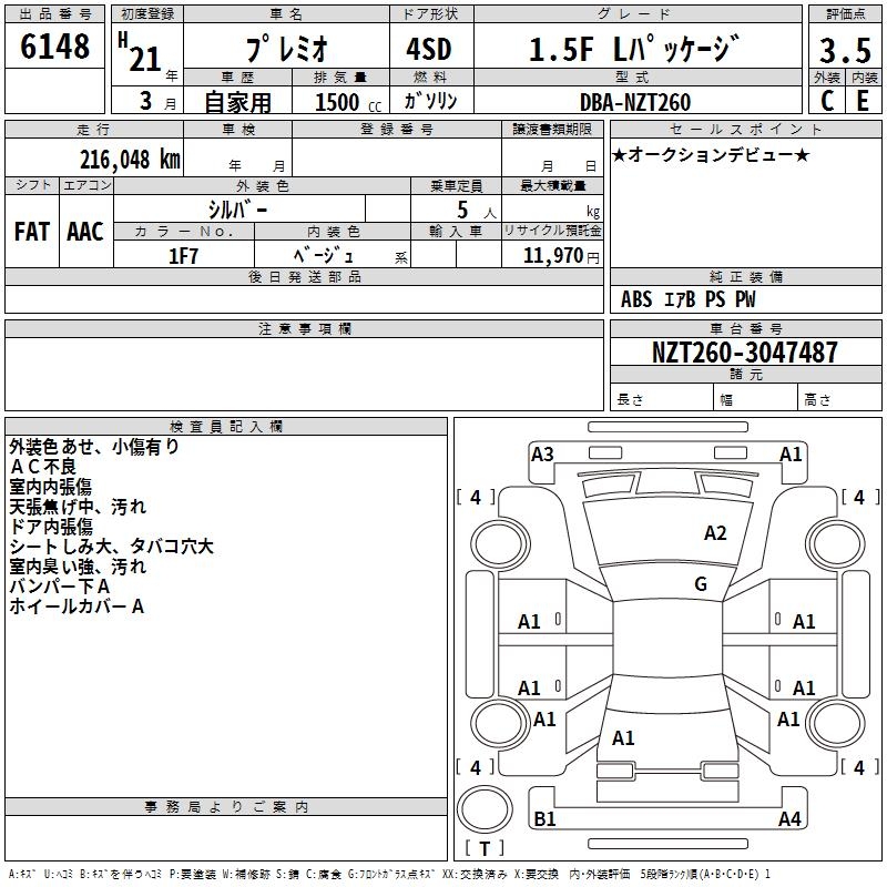 TOYOTA PREMIO - лот 6148