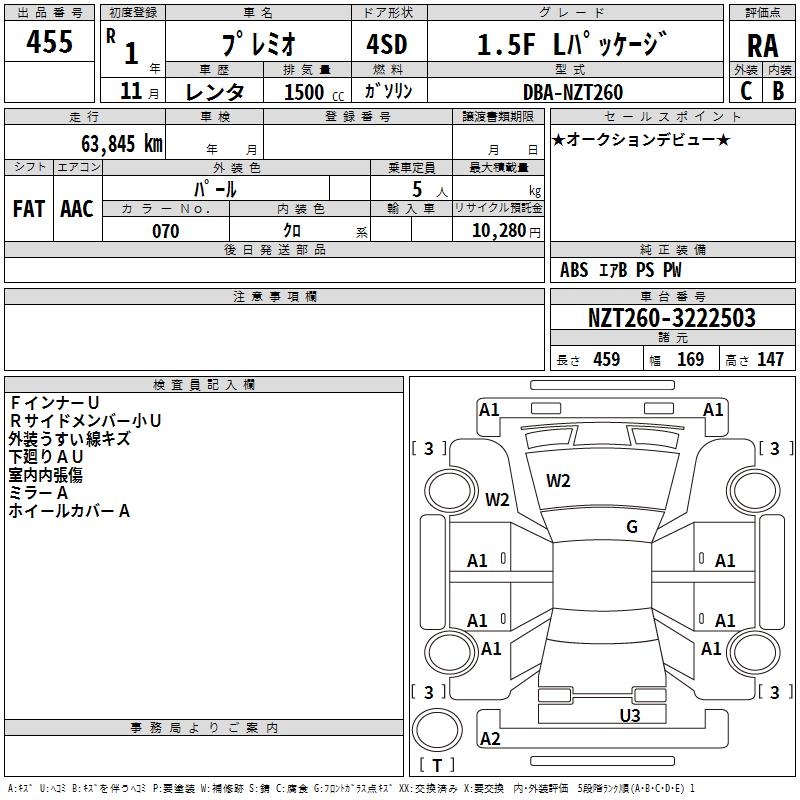 TOYOTA PREMIO - лот 455