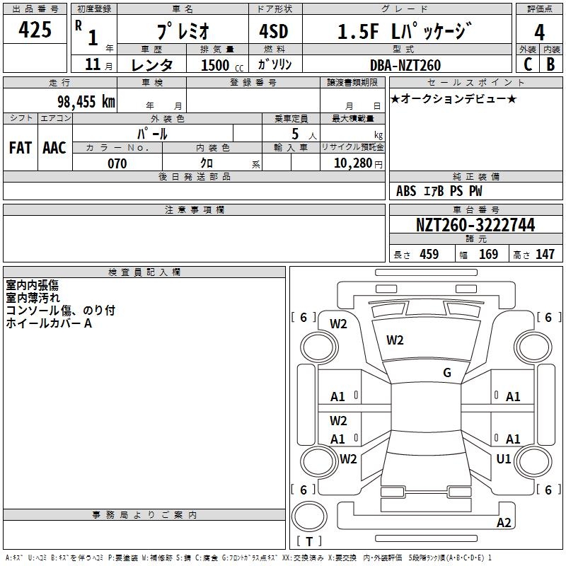 TOYOTA PREMIO - лот 425