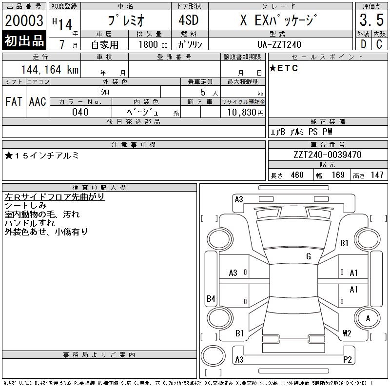 TOYOTA PREMIO - лот 20003