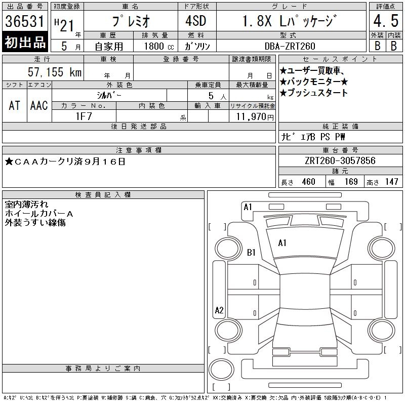 TOYOTA PREMIO - лот 36531