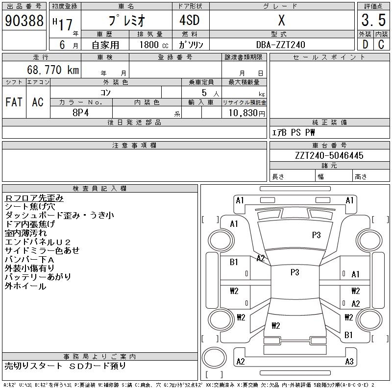TOYOTA PREMIO - лот 90388