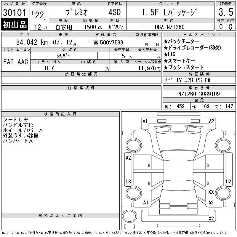 TOYOTA PREMIO - лот 30101