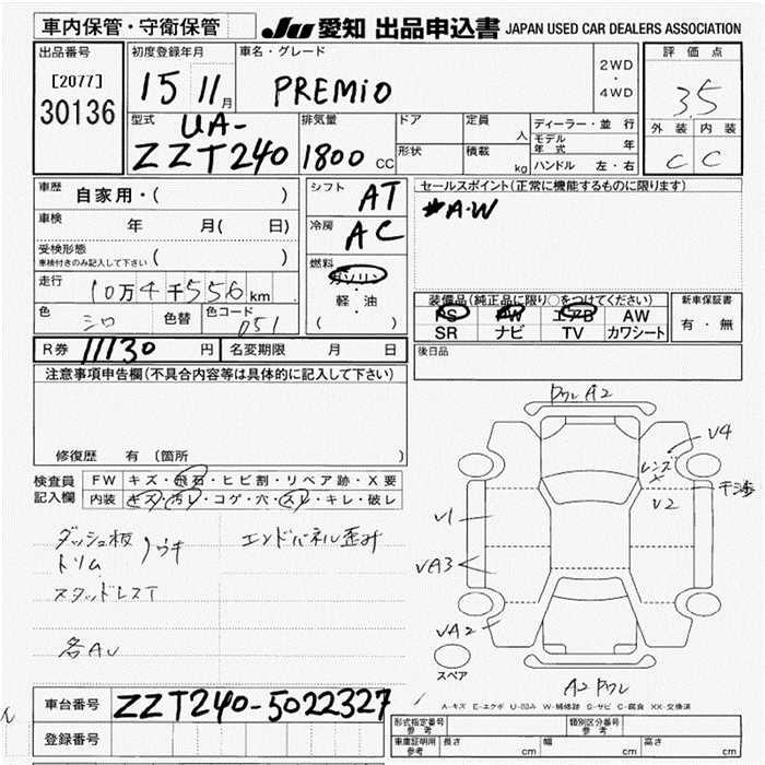 TOYOTA PREMIO - лот 30136