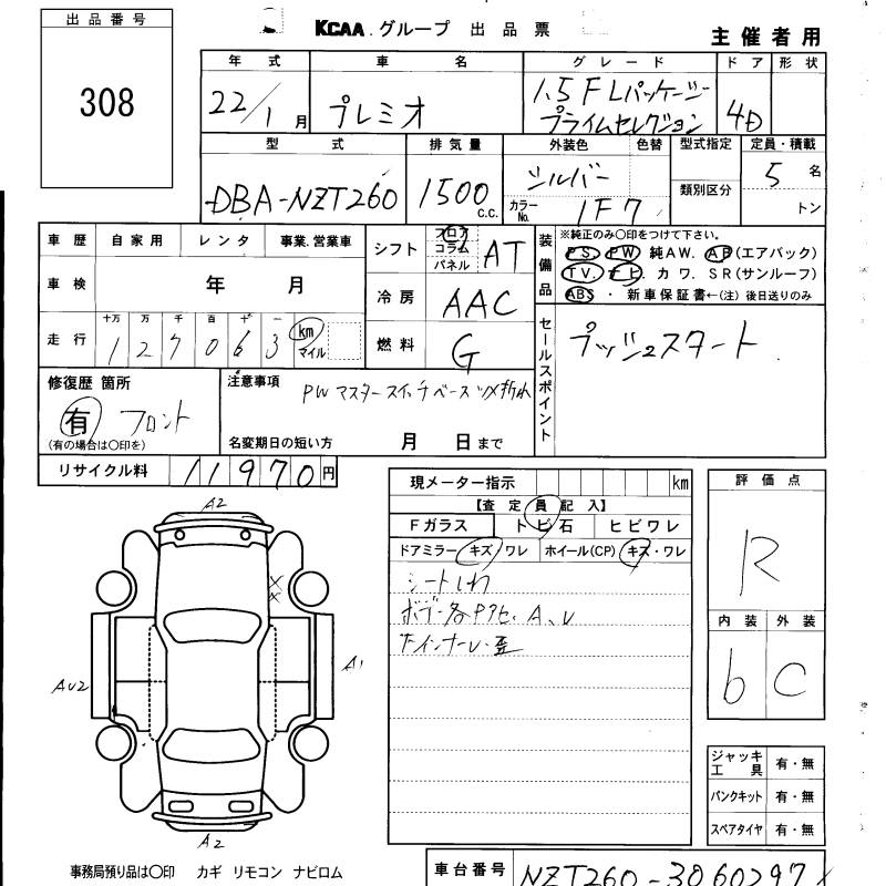TOYOTA PREMIO - лот 308