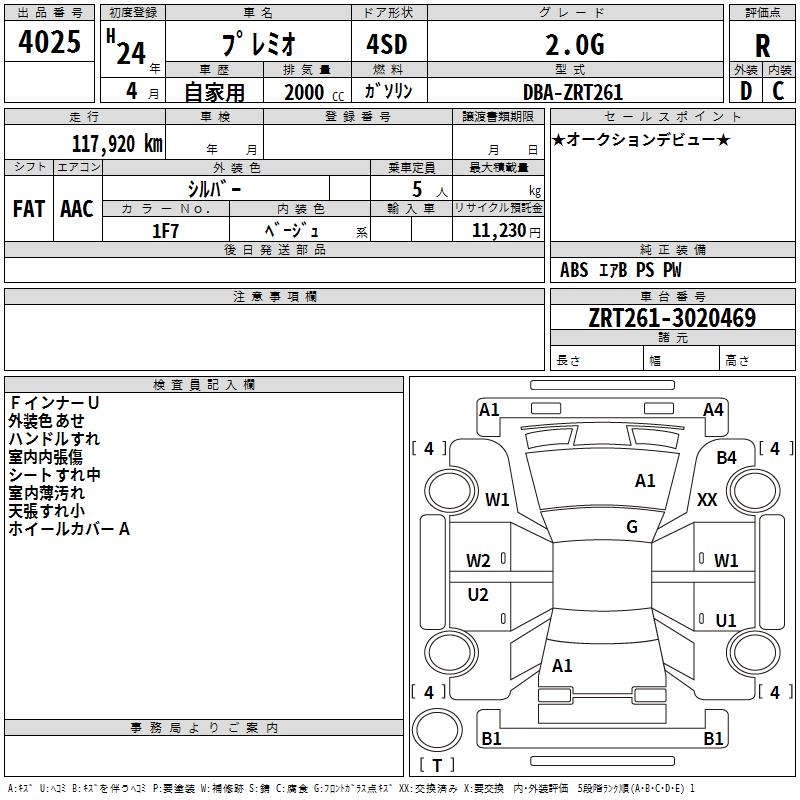 TOYOTA PREMIO - лот 4025
