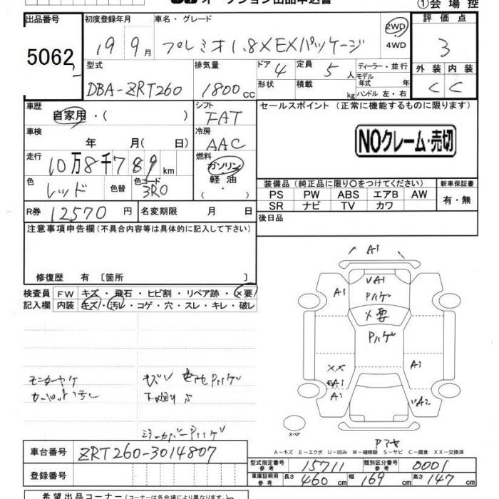 TOYOTA PREMIO - лот 5062