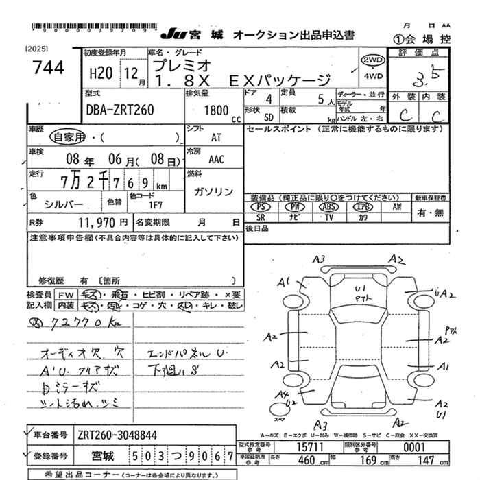 TOYOTA PREMIO - лот 744