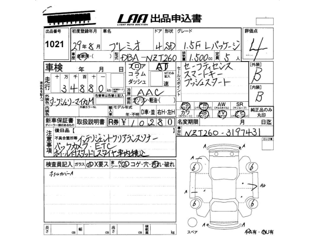 TOYOTA PREMIO - лот 1021