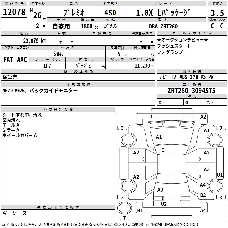 TOYOTA PREMIO - лот 12078