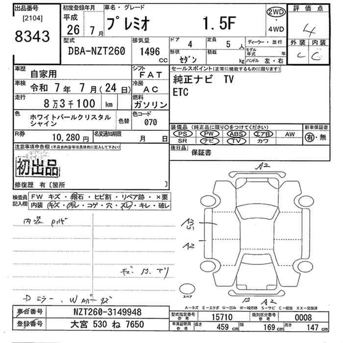TOYOTA PREMIO - лот 8343