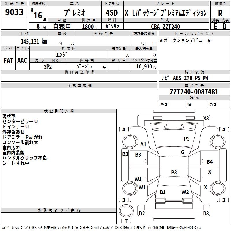 TOYOTA PREMIO - лот 9033