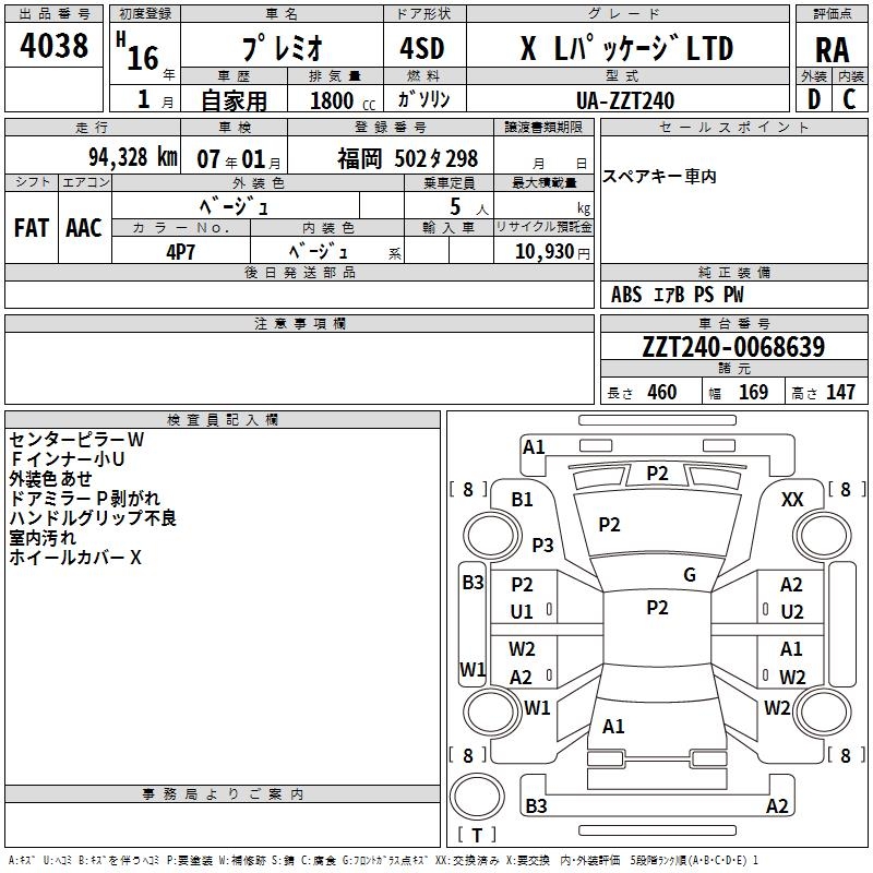 TOYOTA PREMIO - лот 4038