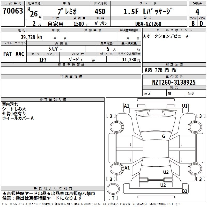 TOYOTA PREMIO - лот 70063