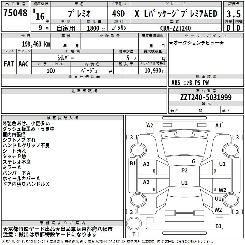 TOYOTA PREMIO - лот 75048
