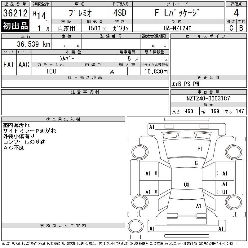 TOYOTA PREMIO - лот 36212