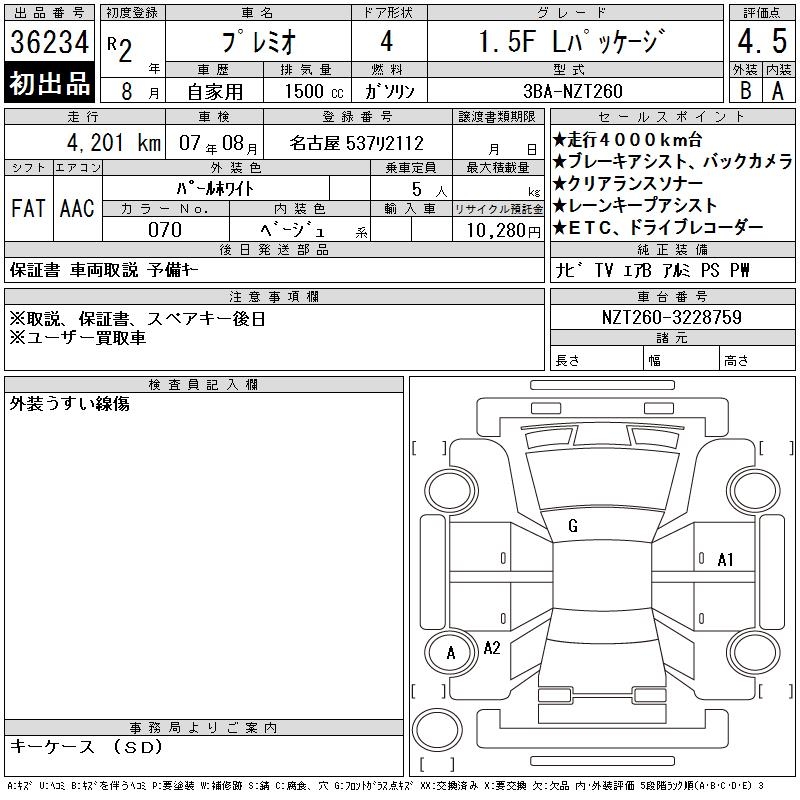 TOYOTA PREMIO - лот 36234