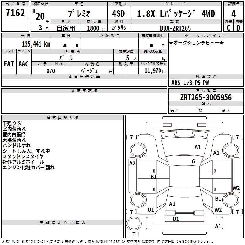 TOYOTA PREMIO - лот 7162