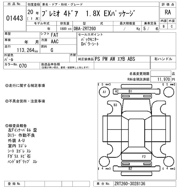 TOYOTA PREMIO - лот 1443