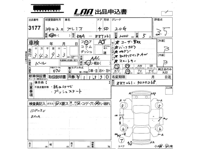 TOYOTA PREMIO - лот 3177