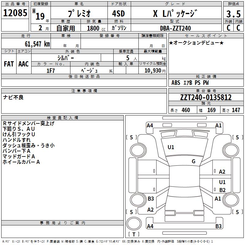 TOYOTA PREMIO - лот 12085