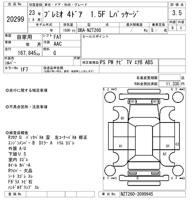TOYOTA PREMIO - лот 20299