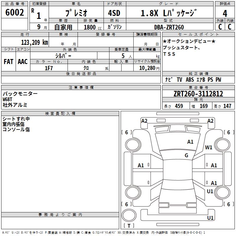 TOYOTA PREMIO - лот 6002