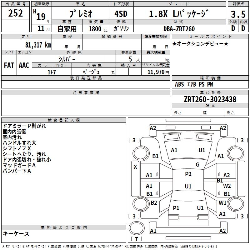 TOYOTA PREMIO - лот 252