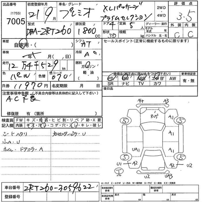 TOYOTA PREMIO - лот 7005