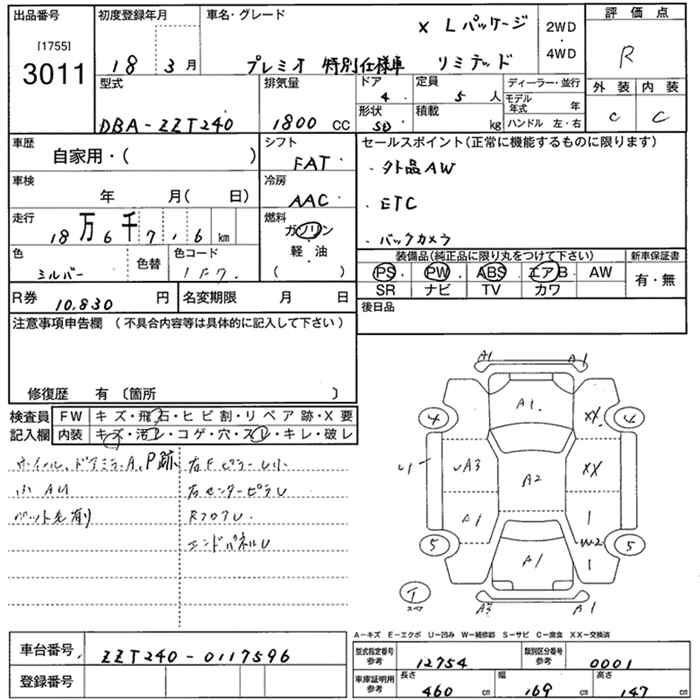 TOYOTA PREMIO - лот 3011