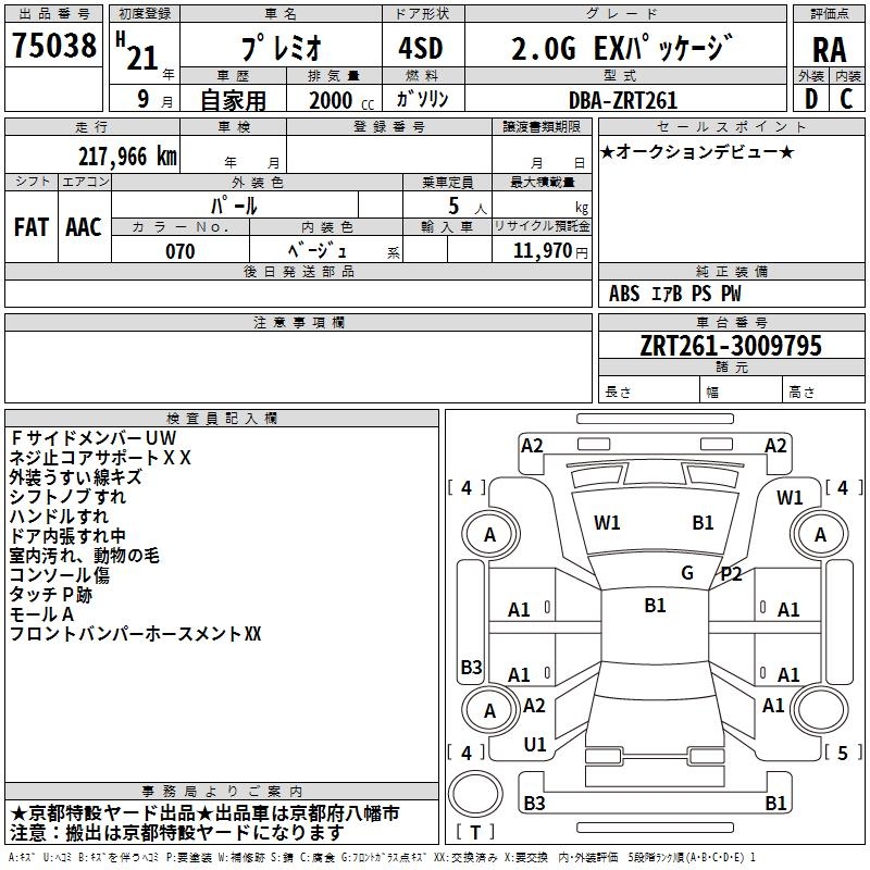 TOYOTA PREMIO - лот 75038