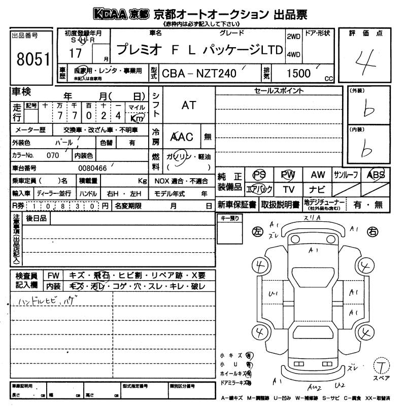 TOYOTA PREMIO - лот 8051
