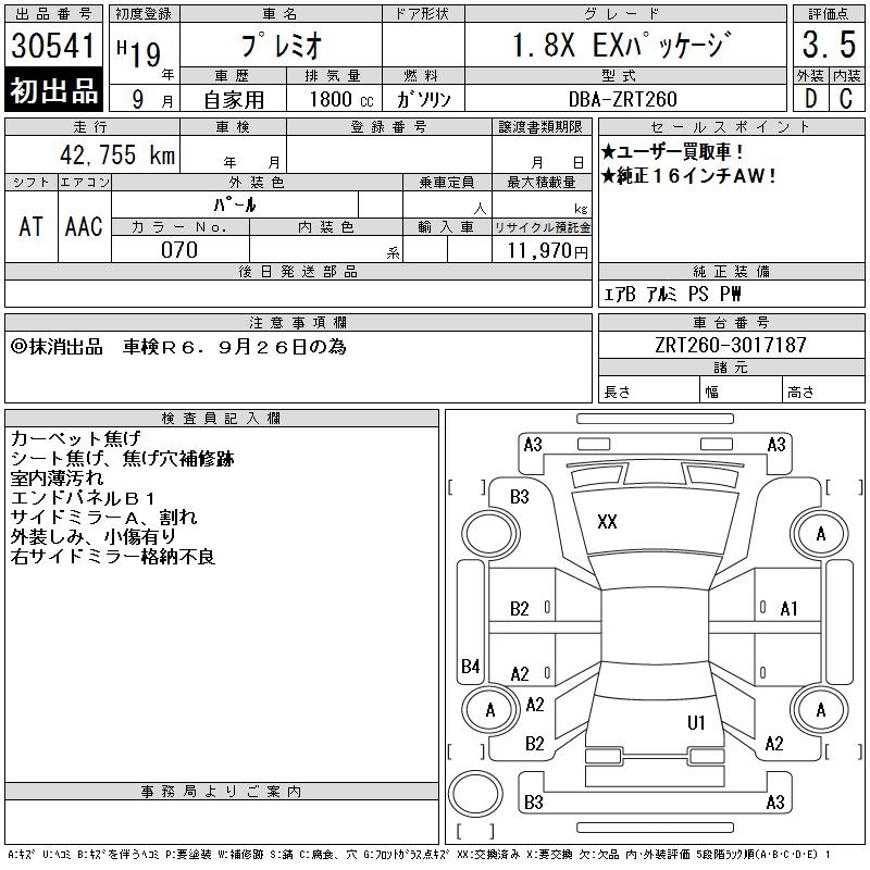 TOYOTA PREMIO - лот 30541
