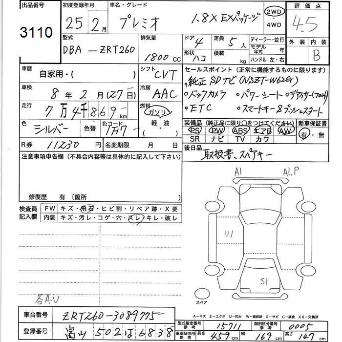 TOYOTA PREMIO - лот 3110