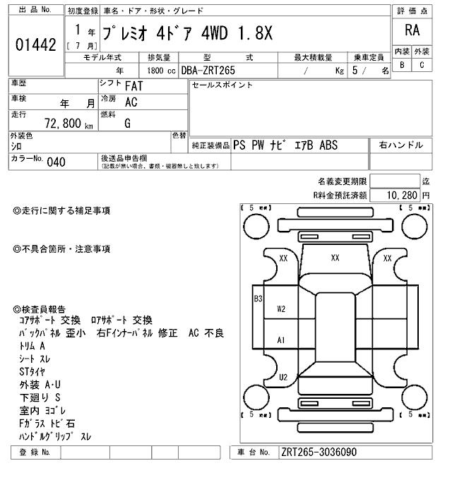 TOYOTA PREMIO - лот 1442