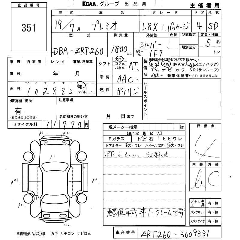 TOYOTA PREMIO - лот 351
