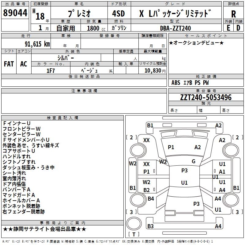 TOYOTA PREMIO - лот 89044
