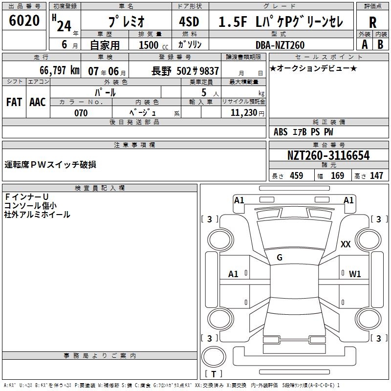 TOYOTA PREMIO - лот 6020