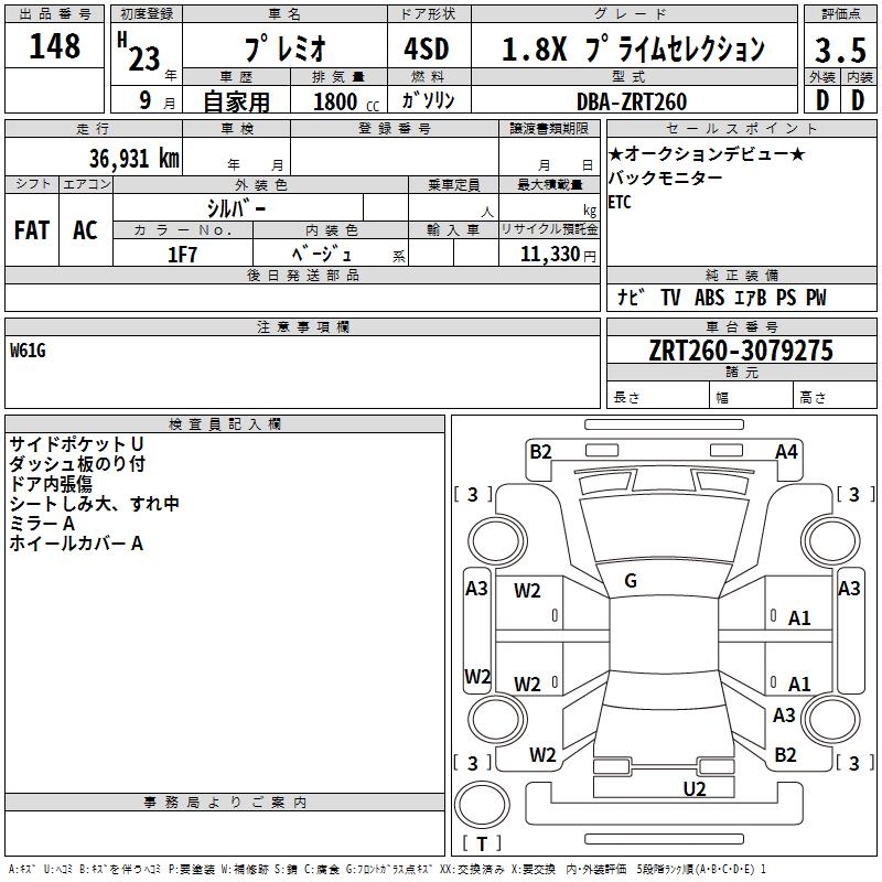 TOYOTA PREMIO - лот 148