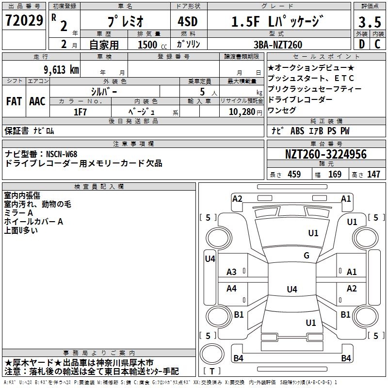 TOYOTA PREMIO - лот 72029
