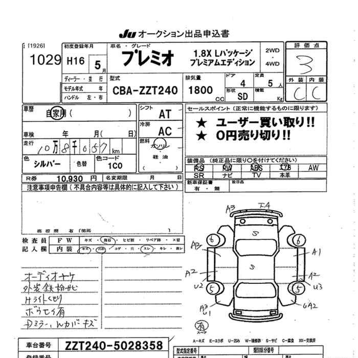 TOYOTA PREMIO - лот 1029