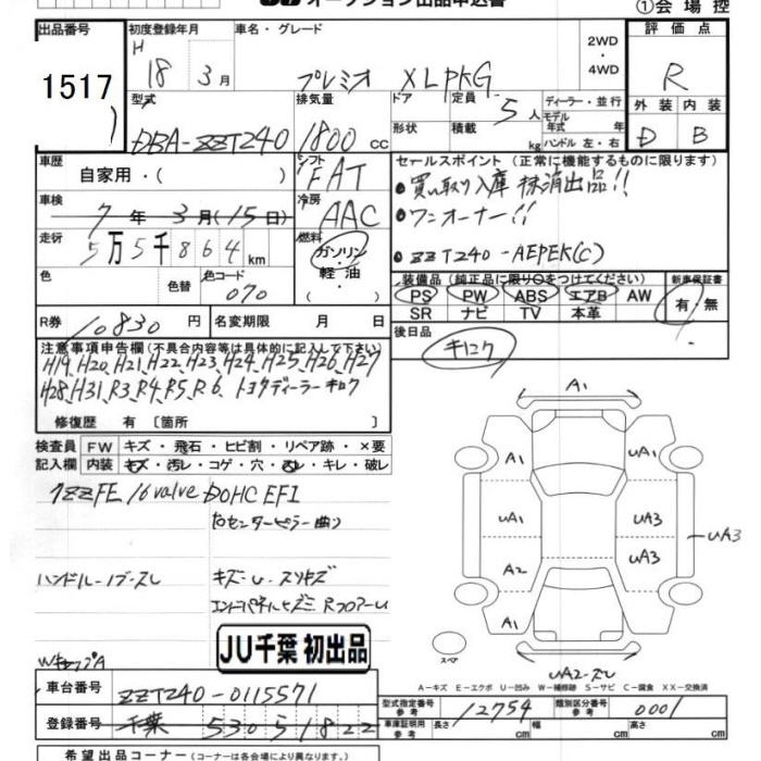 TOYOTA PREMIO - лот 1517