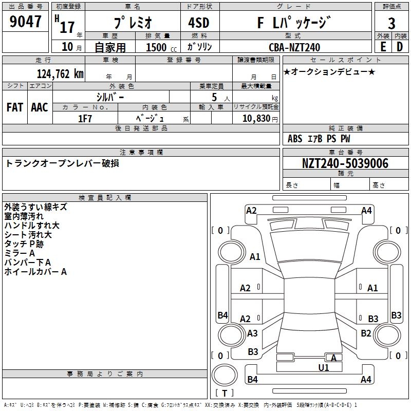 TOYOTA PREMIO - лот 9047