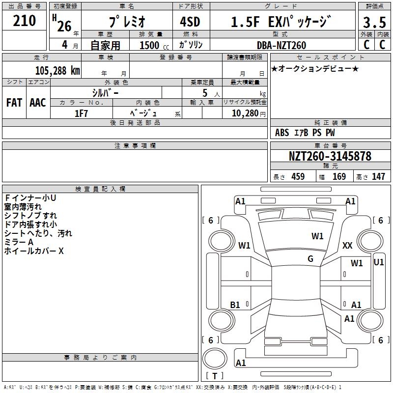TOYOTA PREMIO - лот 210
